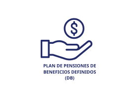 Icon of a hand holding a dollar sign inside a circle, with the text "PLAN DE PENSIONES DE BENEFICIOS DEFINIDOS (DB)" below.